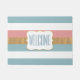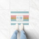 ピンク、白い青、金ゴールドのパターンで行われるシックなフロントドアマストライプのット。白い装飾文字領域は、マットの中央に、パーソナライズする準備ができている青い文字を持っている。あなたの家にゲストを歓迎するなんて素敵な方法だ。