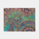 渦巻形のな木、太陽、葉および円の青緑のピンクおよび黄色の抽象的な絵画はこのユニークで、美しいドア・マットを作ります。