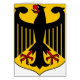 ドイツの紋章。ドイツの紋章は、黄色い盾(または、ワシが黒く表示)に黒い鷲(ドイツ連銀の「フェデラルイーグル」、以前のReichsadlerの「インペリアルイーグル」)を表示する。1950年にドイツ連邦共和国によって採択されたワイマール共和国(1919-1935年)の紋章の再導入である。現在の公式デザインはトビアス・シュワブ(1887-1967)によるもので、1928年に導入された。