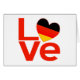 赤い文字読「LOVE」とハート型のドイツ国旗「O」用。おもしろいはいつでも、しかし、特にバレンタインデーに。あなたの素晴らし文化、伝統、祖先の愛を共有する方法。