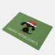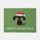 かわいい漫画ウィーナー犬のクリスマスウェルカムマット。黒髪と黄褐色の長髪のダチュンドの子犬サンタ帽を着て。"Happy Howlidays"文字は自分パーソナライズされたのメッセージと共に使用できる。ホリデーシおもしろいーズンのドキシー形式。ウインナソーセージ愛犬家に最適。