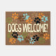 色数々のの犬の手のプリントは、おもしろいフォントで犬の歓迎メッセージを囲む。犬の来訪者は好き?あなたの場所は犬を這っているか。歓迎マットでおもしろいを迎える。トリマー素晴らしやペットシッター、獣医のオフィスなど、犬を使ったビジネスにも最適。