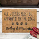 この形式でゲストおもしろいを歓迎!「すべてのゲストは犬によって承認されなければならない」。..犬の名前でパーソナライズ。ウェルカムフォーマット – Dog Paw印刷フロアマット。自然素朴のフェイクコーアとポープリント付きの黒いデザイン。COPYRIGHT © 2022 Judy Burrows, Black Dog Art - All Rights Reserved.ドッグドッグのコーアードーおもしろいマによって承認されたすべてのゲスト