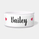 パーソナライズされたペットボウル。ペット名を追加する。名前は2つの水色のハートの間にある。長い名もし前を持っている、ハートはフィットするように移動することができる。クリックカスタマイズ続き感謝してい!