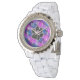ドッグラバー斜ストライプめ向き斜め青パープルポープリント 腕時計