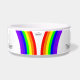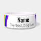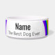 名前と「ドッグエバー」の最高の犬の食べ物のボウルは、白いボウルに虹のデザインを持つ; HAMbyWhiteGlove.