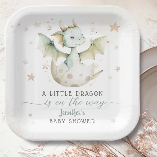 ドラゴンベビーシャワーかわいいボホグリーンウォーター色 招待状