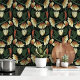 印象的な「ドラマチックな鳥とつる植物」壁紙で宇宙を変換。この魅力的なデザインは、深いの黒い背景に赤、クリーム、緑の色合いの赤描写、クリームと緑の青々としたつる植物やフローラモチーフに浮かび上がる様式化された鳥を特徴としている。色と鮮やか複雑なパターンは、どんな部屋でも声明を作るのに最適なドラマとエレガンスの感覚を作り出す。リビングルーム、ダイニングエリア、またはフィーチャーウォールに最適な、この壁紙はヴィンテージの魅力と自然な洗練のtouchを追加するホームデコール。