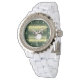 ドラムセット転が~シートミュージック~金ゴールド/緑の背景 腕時計