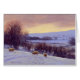 ヒツジとのSnowyの日没のウェールズの景色。 ドーナCrawshaw著元の絵画から。 理想的なクリスマスカード