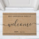 天然素材とモダンなデザインの玄関マット。お客様のファミリー ネームと「ウェルカム」の現代的なカリグラフィーデザインを施した、オリジナルのデザインの玄関マットです。