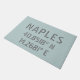 ナポリスタイリッシュイタリアの都市緯度と経度のマップ座標を淡青色の背景に灰色の産業モダンフォントで前面doormat