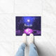 屋外の装飾のためのナマステドーマットでカスタマイズお客様の家に歓迎。鮮やかな星を持つ紫色のクリスタルロータス花。「ナマステ」(神への敬意を表す挨拶)はパーソナライズされた、名前、メッセージ、引用文など何でも好きなように言える。