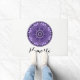 紫色のフローラスピリチュアル蓮の花マンダラプリントとナマステの文字と白いドアマパーソナライズされたット。ScriptoGraphicデザイン・ストアで利用可能な一致するバスの装飾。