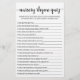 このゲームを購入して、イベントに高品質のナーサリーライムクイズカードをお楽しみください! ジェンダー ニュートラルなブラック&ホワイト デザイン。