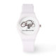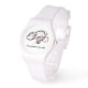 このカスタマイズ白い時計は白いゴムで作られたバンドと秒針を持つ。名前や機能カスタマイズを使って、さらに詳しく説明できる。