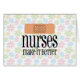 かわいいナースはそれによりよい設計特微を救急処置および傷のための肉色の付着力の包帯気にならせます。 ピンクの、緑および他の柔らかい色のパステルカラー花のある背景の。 あなたの感謝をあなたのお気に入りのなナース、看護学生に表現しますか、またはナースの週に、衛生学校の卒業で、または行った場合医者のオフィスに声明をして下さい。 すべてのデザインは©の2012年のwww.CuteComfy.com著作権をとります