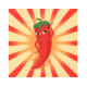 スタイルにヴィンテージハーフトーン効果を適用した漫画の唐辛子。ペッパーと可愛い漫画のキャラクターを愛する人のためのギフトアイディア。