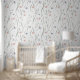 ベッドルームかわいらし、リビングルーム、デンス、ダイニングエリアに魅力的なフローラ壁紙パターンは、ここに…家の中のどこでも!ニュートラルなグレー、ソフトなピンク、ブルーの主なトーンの様々なワイルドフラワーイメージで構成されている。すべて白い背景に置かれる。