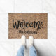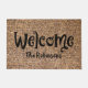 小さなニュートラルブラウン、タン、ベージュの石のデジタルイメージを特徴とするおもしろいウェルカムマットの編集可能な家族名。その他のサイズも利用可能。パブリックドメイン画像のHeared_ enhanced写真。