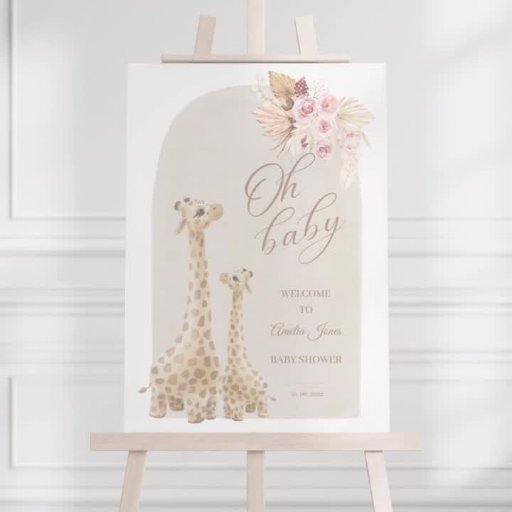 ニュートラルパンパスグラスギラフェベビーシャワー 招待状