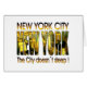 大きいNYの手紙を通って微かに光り、"都市doesnの` tの睡眠言うミッドタウンのスカイラインの一部分とのニューヨークのデザイン…"を