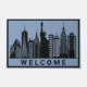 ニューヨークのスカイラインのシルエットは、マンハッタンの象徴的な建築とイメージを特徴としている。ウェルカムサイネージと背景色をカスタム変更する