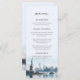 このスタニッシュなニューヨーク市街水彩画風景デザインで、あなたのウェディングメニューをグレードアップさせましょう。エレガントなタイポグラフィーと、象徴的な自由の女神とニューヨーク市街の水彩画イラストは、街の中心でのデスティネーションウェディングの本質を捉えています。
