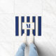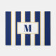 このドアマットとエレガントお客さまモダンを歓迎。ネイビシンプルーブルー、ホワイト、金ゴールドの金ゴールドにリマストライプッドモノグラムのデザイン。モノグラムでパーソナライズ。