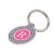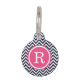 ネイビーとピンクシェブロンのモノグラム ペット ネームタグ