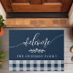 ネイビーとホワイトのバッファロー チェック ウェルカム パーソナライズド ドアマット。 このカスタム デザインをあなた自身の家族の名前でパーソナライズしてください。