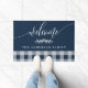 ネイビーとホワイトバッファローチェックへようこそパーソナライズされた ドアマット