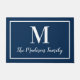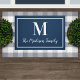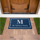 ネイビーとホワイトの色のエレガントクラシックモノグラカスタムムのdoormatで家の入り口をリフレッシュ。色は変更できる。スクリプト内の家族の姓とセリフスタイルモノグラムイニシャルでパーソナライズ。デザインは枠シンプル付き縁どを含む。