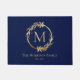 ネイビーエレガントブルー金ゴールドリースファミリーネームモノグラム ドアマット