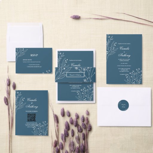 Navy Corner Floral Boho Weddingデザイン: Dia Sha
