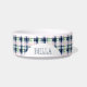 ネイビーパーソナライズされたブルー&ピンクプレイドペット ボウル