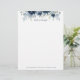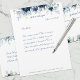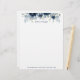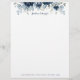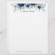 水色のネイビー青牡丹に銀と埃の多い色彩の鮮やか青色ユーカリの緑を施した水色フローラレターヘッド文房具。