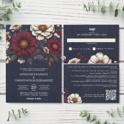 ネイビーブルーとブルゴーニュのフローラ結婚ズ セーブザデート