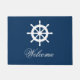 ネイビーエレガントブルーと白航海ののカスタムドアマット。の背カスタム景の色と文字をモノグラムの使用しカスタムて、屋内/屋外のフォーマットを作成。自分のウェルカムメッセージ、家族の名前、姓、イニシャルの文字または引用文をおもしろい追加する。新しいホーム/引っ越し祝いパーティー、の会場、結婚店、ショップ、会社、オフィス、ビジネスなどのかわいいギフトアイディア。スクリプスタイリッシュトタイポグラフィホワイトボートヘルムロゴ。Ship Wheelアイコンを持つパーソナル化可能なテンプレート。玄関/玄関やホール用の独自の高級エントリマット/ラグを作成する。カスタマイズ可能なホームデッキ/あなたのビーチハウスのための装飾。セーリング/ボート愛好家、カップル、セーラー、船のキャプテンまたは新しい新しいボートのためのキュートな海上ギフトのアイディア。