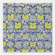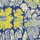 紺色鮮やかの背景を持つ黄色と白の抽象芸術の花をはっきりした特徴とする花柄。複雑なデザインは細かい線で満たされており、テキス芸術的ト、装飾、文房具に最適なダイナミックな外観を作成する。