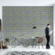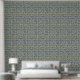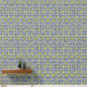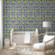 ネイビーブルーに黄色と白の花の模様 壁紙