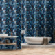 ネイビーブルーインディゴコラージュ紙質感 壁紙