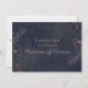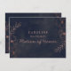 ネイビーブルー&バラゴールド縁どフォイルフローラのデザインと手で描いた花と、と水の色の背景。秋の秋モダンや冬の結婚式をシックで探すカラーパレッはっきりしたト:ネイビーブルー、バラ金ゴールドホイルフェイク詳細。手書きフローラ要モダン素、トレンディー台本フォントパーソナライズされた結婚-'あなたは名誉の提案カードの私のマトロンになるのだろうか!~このデザインのスイート全体を結婚見るために私の店をチェック!