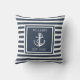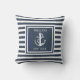 ネイビーブルーパーソナライズされたネームストライプいかり アウトドアクッション