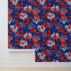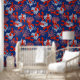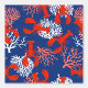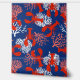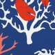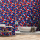 赤いスタイリッシュロブスターとピンクと白のサンゴとダークパターン(の模様が)あるブルーの壁紙を剥き取りスティック