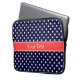 ネイビーブルーホワイト水玉模様コーラルネームモノグラム ラップトップスリーブ