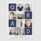 ネイビーモダンブルーグラフィックコラージュ卒業カーモダンドA、グラフィックフォト数々の卒業カード。背景色を変更してカードをカスタマイズする。あなたの卒業生の写真や年齢の選択を示すのに最適。コレクションの一部。