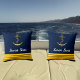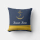 ネイビーブルーヨットボート金ゴールドいかりキャプテンストライプズ アウトドアクッション