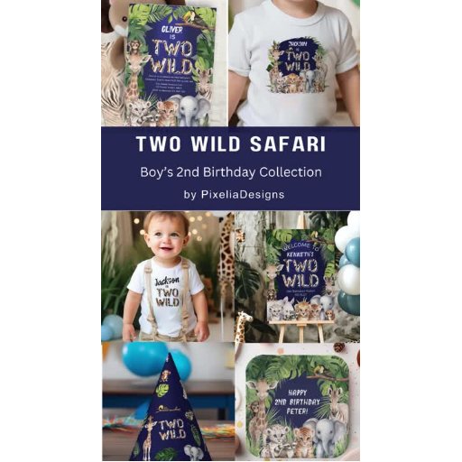 Navy Blue Two Wild, Safari Themed 2nd Birthday デザイン: Pixelia Designs