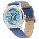 ネイビーブルー迷彩柄迷彩模様のボーイズウォッチ 腕時計